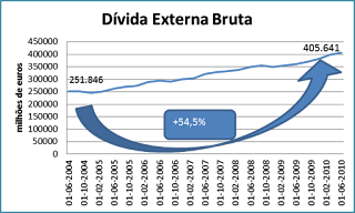 A dívida externa bruta aumentou 54,5% entre Junho de 2004 e Junho de 2010. Claro que há dívida que financiou activos mas que não geraram ou estão a gerar o rendimento necessário para amortizar esta dívida.